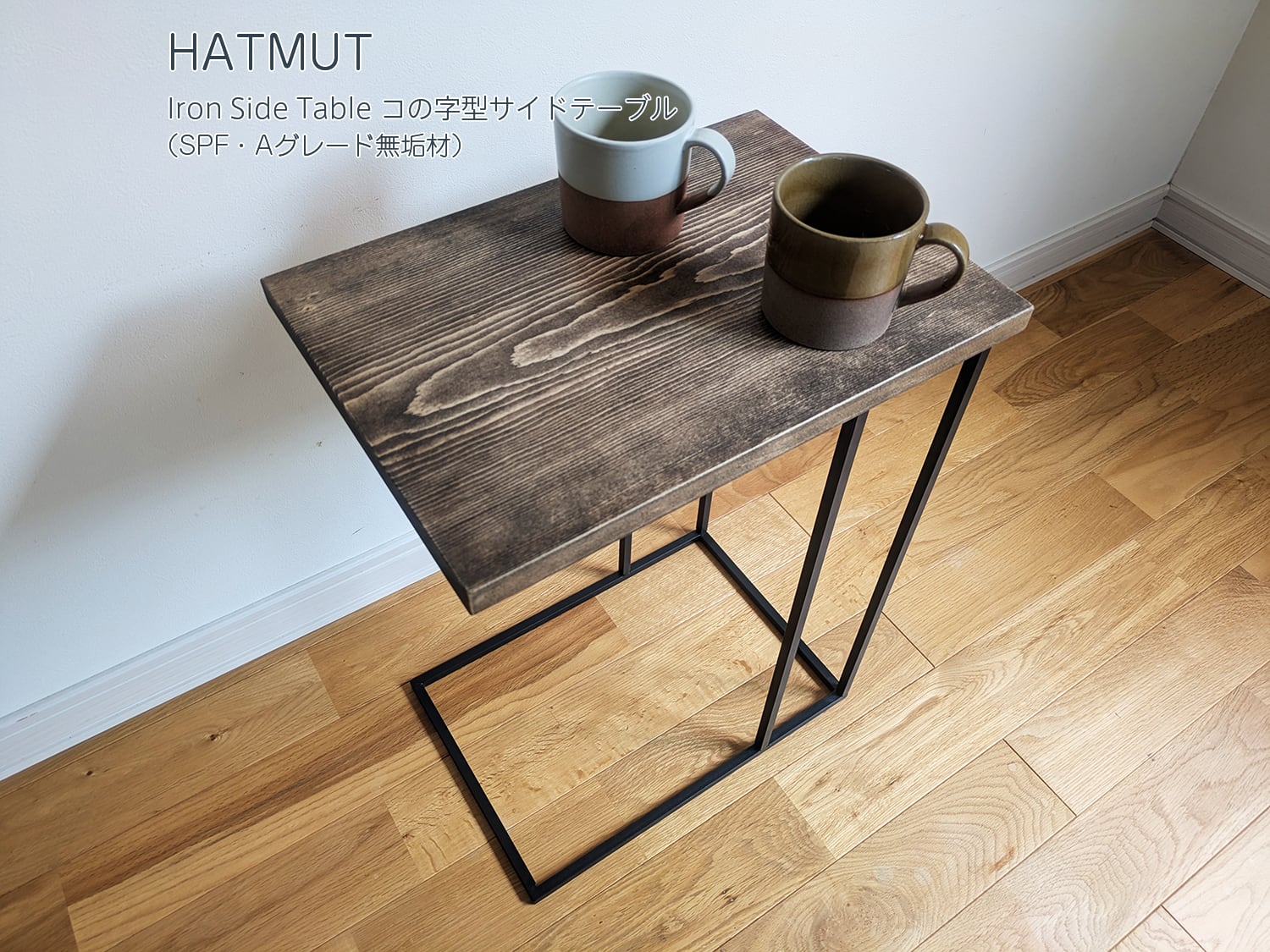 無垢材とアイアン脚を組み合わせたサイドテーブル。