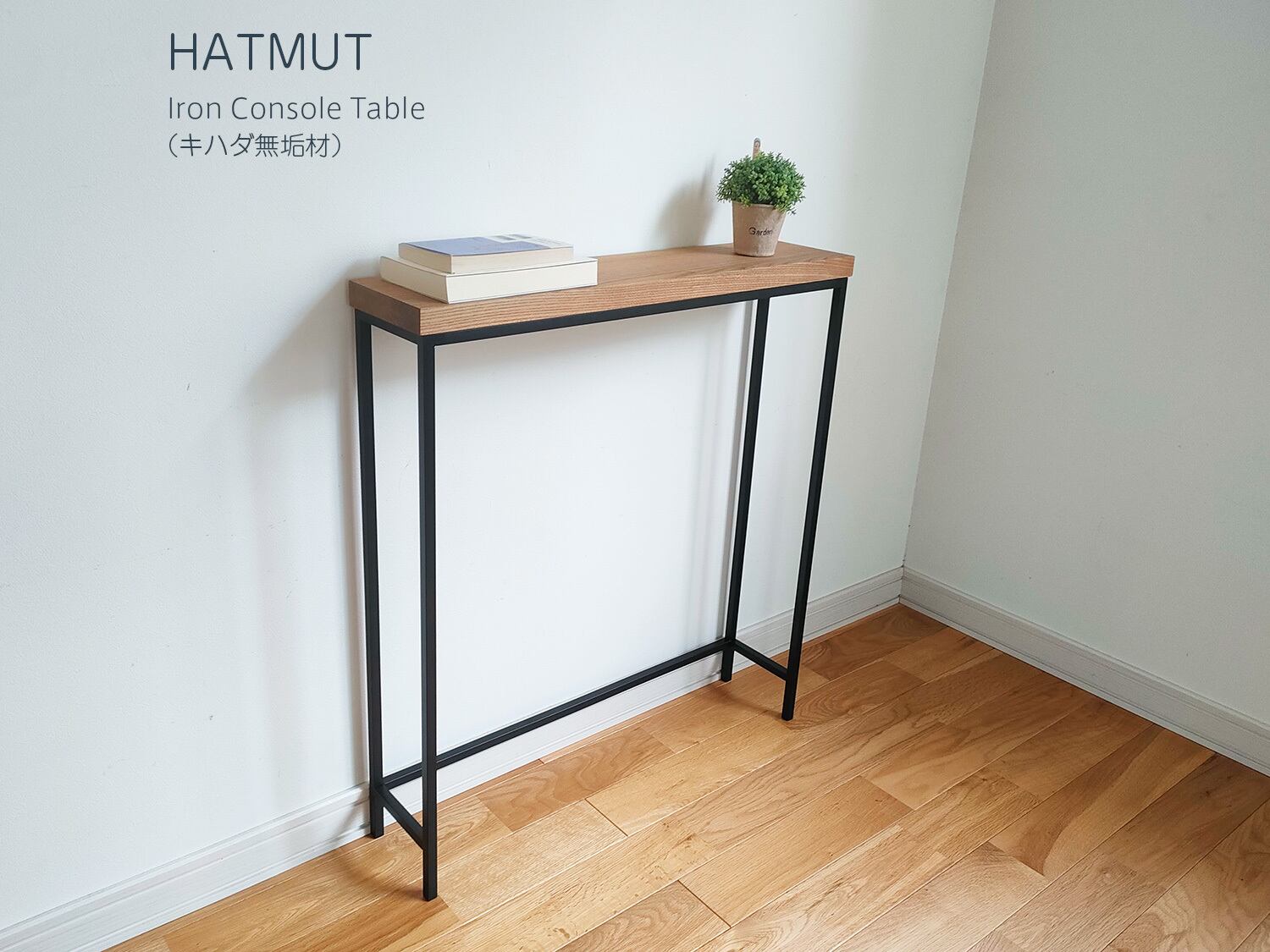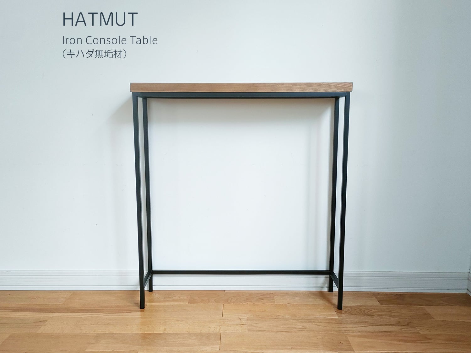 キハダ無垢材とアイアンでシンプルデザインなコンソールテーブル。